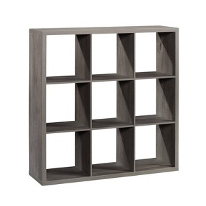 Is organization an issue in your home? Look no further! Create the storage and organization that your home needs without having to sacrifice on the style that you love with this 9 cube organizer from the Sauder Select collection. This storage bookcase features nine spacious cubbyholes that are perfect for storing your collection of books, stacks of magazines, and spare blankets. These cubbies also make a great place to display home décor like decorative plants and framed photos of the family. Each cubby shelf can also hold 13-inch storage bins (sold separately) for additional hide-away options that allows you to contain and conceal clutter. The spacious top surface of this 9-cube storage offers additional display for items like a table lamp and framed art. Cube organizers, like this one, have a place for all your things! Finished on all sides, this cube storage bookcase will look great in any room of your home. Finished in Mystic Oak , this cubby bookshelf will have your home looking tidy in no time!