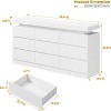 Overall dimension is 63.0"W*15.6D"*32.1"H. Interior drawers‘ storage space measure 19.3"W*11.8"D*4.7"H. Easily store your scarves, books, cosmetics, towels, bags, toys, underwear, and socks to keep room tidy and organized.