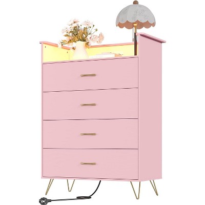 9-Drawer RGB Light Dresser with Charging Station, App-Controlled Music Sync, Large Wooden Storage Chest for Bedroom/Closet, Pink
