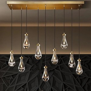 - The Brass Raindrop chandelier is suitable for living room, dining room, kitchen island, stairwell, study, bedroom, hotel lobby, bar, etc.