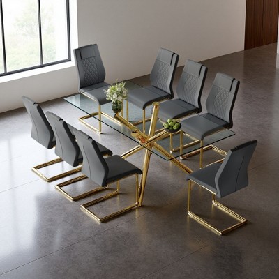 9-Piece Dining Set with Tempered Glass Table and PU Armless Chairs