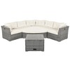 Transform your backyard into a luxurious retreat with this Modular Outdoor Curved Patio Sofa Set. Designed with adaptability, comfort, and elegance in mind, this weather-resistant patio set features a modular layout, stylish PE rattan finish, and plush cushions, making it ideal for entertaining guests or enjoying quiet moments under the sky.