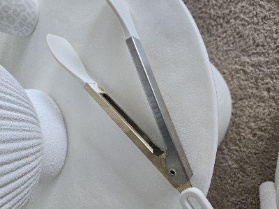 I liked this wider, blunt thong for flipping foods while cooking. Surprisingly, found it easier then the narrow type.