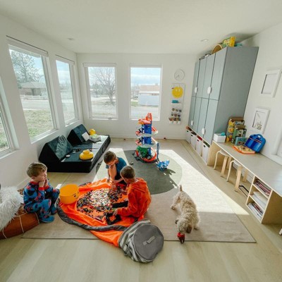 This rug is very flat with little to no thickness, but that’s nothing a rug pad underneath can’t solve. Everything else about it is great. It’s soft, washable, large, has a great bold print (perfect for the playroom) and hides little stains and crayon scuffs pretty well. The kids and I love it and it’s a great addition to our home.