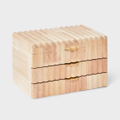 9"x12" Stackable Bamboo Accessory Tray Set with Lid - Brightroom™: Jewelry Organizer, Divided Storage, Light Brown