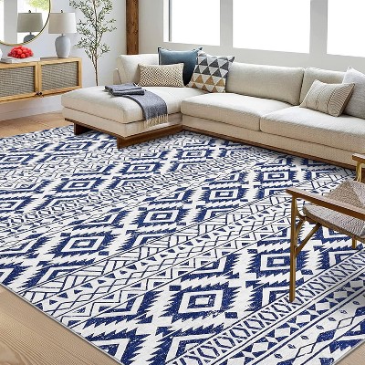 9 x 18 ft Plastic Light Blue and White Rectangular Beach Front Porches Patio Picnic RV Camping Garage Outdoor Modern Flower Printed Area Rug