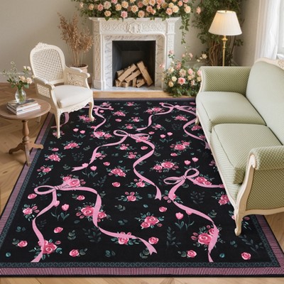 9'x12' Indoor Modern Washable Living Room Rugs, Ultra Thin Soft Non Slip Geometric Checkered Throw Carpet for Bedroom Dining Room, Black