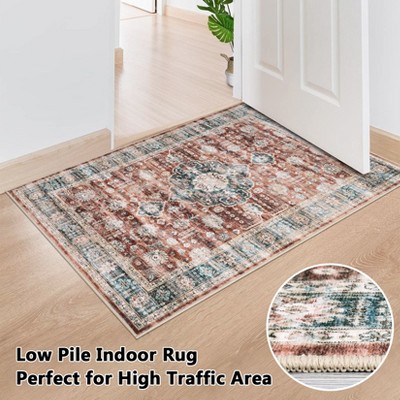 9 x12 Machine Washable Vintage Medallion Area Rug - Low Pile Distressed Carpet, Retro Accent Rug for Living Room, Bedroom, Kitchen