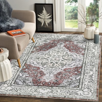 9'x12' Vintage Machine Washable Area Rug - Ultra-Thin, Stain Resistant & Non-Slip Rug for Living Room, Bedroom & Home Decor, Red
