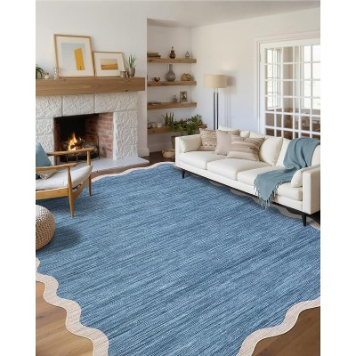 9'x12' Washable Boho Runner Rug, Geometric Hallway Runner, Stain Resistant Thin Carpet with Reinforced Edges, Foldable Easy Clean Area Rug, Black