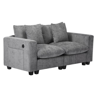 Product Name: 90" Compact Sofa, 2-Seater Gray Chenille Couch with USB/Type-C Ports & Side Pockets, Medium Firm Support
