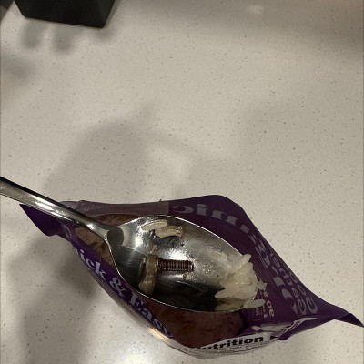 It was 4am, I woke up to my dog throwing up so I decided to make him some rice to help with his upset stomach. Went to poor the pack of rice into his bowl and found some weird grey discoloration and a screw. DO NOT BUY