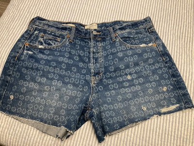 Upgrade your casualwear wardrobe with these Mid-Rise 90's Baggy Denim Shorts from Universal Thread™. Made from cotton-recycled cotton blend denim fabric, these mid-rise shorts feature cute floral prints with embroidered accents and a fly button for easy wear. Tailored in a relaxed fit, these denim shorts are designed with frayed hems for a raw, unfinished look. The belt loops, two front and back pockets, and a coin pocket complete the style.