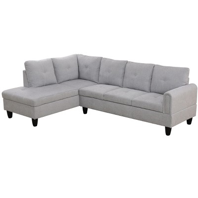 - Sectional Sofa Pieces: This sectional features gray upholstery that's both versatile and trendy. Includes left-arm-facing loveseat, wedge and right-arm-facing loveseat, 3 pillows are included in the package to meet various daily use needs.