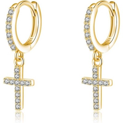 925 Sterling Silver CZ Chain Hoop Earrings Dangle for Women Teens Dangle Earrings Chain Drop Earrings Huggie Gold One Size