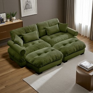 - Matching Ottomans Included This sofa comes with matching movable ottomans in the same velvet fabric, offering ultimate flexibility. Easily rearrange them to form a sectional, U-shaped sofa, or use them as standalone footrests or extra seating options.