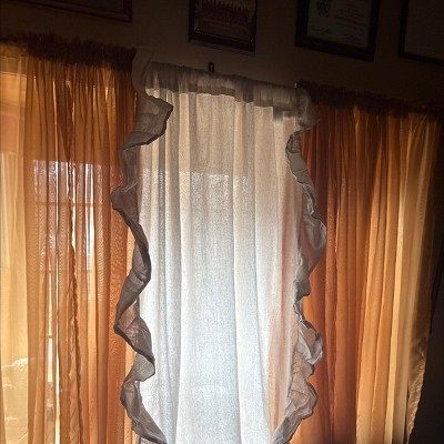 Add subtle texture to your home with the Lush Decor Linen Ruffle Curtain Panel. This solid colored curtain has a linen-texture and is adorned with a romantic cascading ruffle border. It brings a touch of rustic charm to your space. These light filtering curtains for bedroom provide moderate privacy while helping to filter sunlight, allowing a soft glow to fill the space. These linen curtains are crafted from a linen-textured cotton fabric blend and are unlined. Sold a single panel, measuring 54 inches wide in multiple length options and have a 5 inch ruffle on all 3 sides. It easily fits Parisian chic, cottage core, or modern farmhouse decor styles. These drapes offer seamless installation with its 3" rod pocket, easily slide it onto your curtain rod or by using clip rings (not included). To care for these living room curtains, simply machine wash cold on the gentle cycle and tumble dry low. Use an iron on low heat to release wrinkles, if needed.