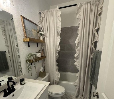 Decided to use them for my guest bathroom (no one has ever showered in it bc we have another guest bathroom ppl use so this was solely decorative). I just could not find a shower curtain I liked or one that looked as good as these. I did steam them bc out of the package they were wrinkly. I love them!