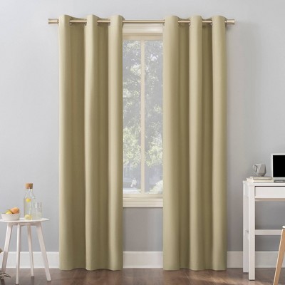 Sun Zero Harper Curtain Panels add a bright, fun pop of color to a kids bedroom, playroom, or any room of your home. Sun Zero Total Blackout technology is laboratory tested to block out 100% of light, reduce outside noise by up to 35%, and decrease energy lost through your windows by up to 35%. Comfort is optimized with thermal insulation that helps keep summer heat and winter chill out of your home. Equipped with built-in metal grommets for easy hanging on standard curtain rods up to 1.5" in diameter. Hang in your entertainment room to eliminate screen glare and reduce distracting outside noise, or in your bedroom for enhanced privacy and a sounder, more uninterrupted sleep. Sold as individual panels. Measure carefully before selecting your desired size and quantity. Rod not included. Machine wash cold on gentle cycle. Use non-chlorine bleach when needed. Tumble dry on low heat, using a cool iron as needed.