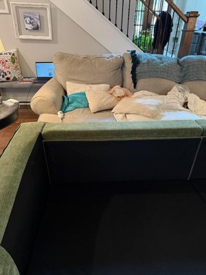 Please look at all photos 1st photo this couch is 1/2 the size of my standard couch 2nd photo we had to tear the fabric in the liner in order to find the screw holes, 3rd photo the 1/2s DO NOT LINE up exactly correct 4th photo the fluff is inconsistant through out even with proper expansion time 5th picture the zipper fell off had to be professional put back on and sewed into place - so I call customer service after sitting on it for a few days and they want me to put it in the box in order to return it - It was vacuum sealed and would probably take 1/2 a dozen boxes- I tried to speak to a supervisor and Cherrie (from online chat) refused to help me- first and probably LAST big purchase from Target - so frustating!!!!!!!!!!!!!!!