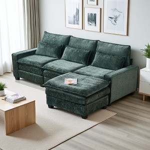 - Plush Chenille Fabric & Dual-Layer Seat: Soft chenille upholstery with HR foam atop high-density foam and springs. Solid wood frame supports up to 500 lbs per seat. Includes 3 back cushions and a lumbar pillow, with a versatile ottoman.