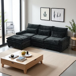 - Plush Chenille Fabric & Dual-Layer Seat: Soft chenille upholstery with HR foam atop high-density foam and springs. Solid wood frame supports up to 500 lbs per seat. Includes 3 back cushions and a lumbar pillow, with a versatile ottoman.