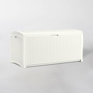 99gal Resin Wicker Deck Box White - Suncast: Secure Pool & Garden Equipment Organizer