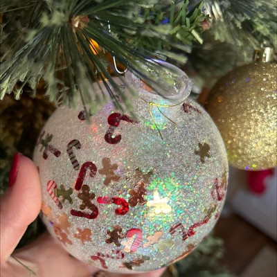 These ornaments are great. The detail with the candy canes and gingerbread cookies is great and makes them look really cute. I also really like the sparkly design. They are a really nice size. These would look great on a tree or in a bowl as a decoration - very versatile.