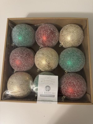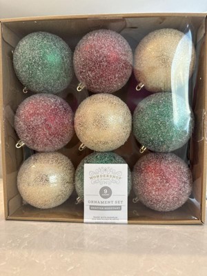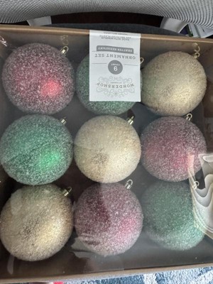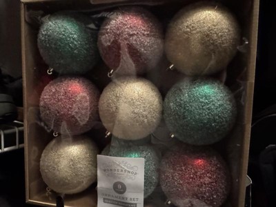 9ct 100mm Christmas Ornament Set Iced Green/Champagne/Red - Wondershop™
