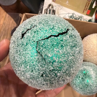 These ornaments are nice. They are unique in their texture since they have that snowy look. They are also pretty big, which I did not initially expect, so they may be too big for our tree. They look a little different in person.