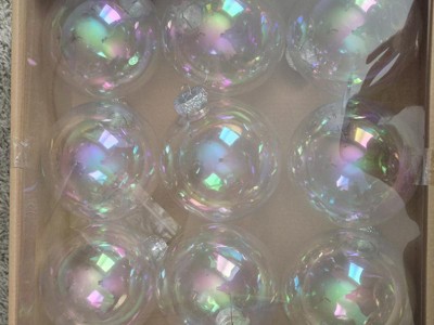 A: The ornaments feature a clear iridescent finish that adds a unique shine.