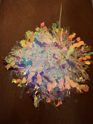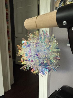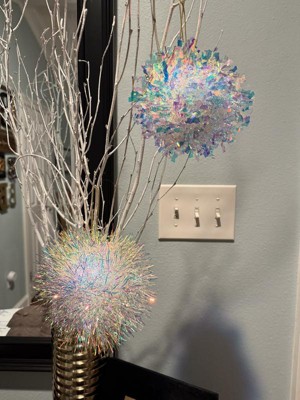These iridescent ornaments are so fun! I love the way they catch the light and can’t wait to use them in my Christmas decor. They do take a little fluffing but it doesn’t take away from their overall look. They’re also a really good size, about the of a softball.