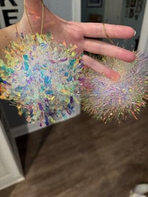 These are fist-sized baubles that are just plastic and tinsel, so no need to worry about them breaking and they are very lightweight so they will not weigh down a branch at all. I love how sparkly and dazzling they are, and will be such a fun pop of color on the Christmas tree. I will say that when I picked one up, a piece of tinsel pretty much immediately fell off, so that was annoying.
