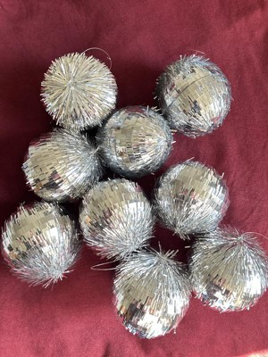These seem more like party favors or decor for a birthday party that Christmas ornaments. The tinsel is cheaply glued on to cardboard balls. Doesn’t really shine or sparkle. Disappointed, might used them for some else but they are not going on the tree