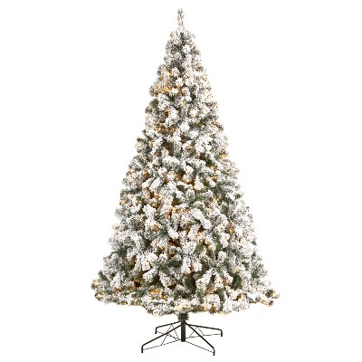 9FT Flocked Pre-Lit Faux Christmas Tree, Realistic Snowy Artificial Christmas Tree with 650 Warm White UL Lights, 1930 PVC Tips - Koiai