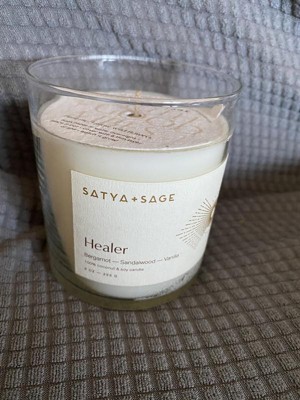 [This review was collected as part of a promotion.] The Satya + Sage Healer candle smells so wonderful! It combines bergamot, sandalwood and vanilla, it is so soothing. The candle is 100% coconut and soy. There is also a cute paper cover on the candle that can be planted and wildflowers will grow from it. Great idea!