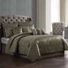 Let the depth of this multi layer jacquard sooth you to sleep as you drift away to paradise. The unique texture of this set will captivate you as you surround your self with coordinating shams, dec pillows and euros. Generously sized and complete with an 18" drop bed skirt, this multipiece comforter set aims to impress!