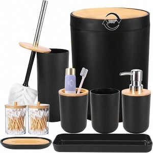 9Pcs Black Bathroom Accessories Set with Trash Can, Bathroom Decor