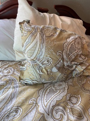 [This review was collected as part of a promotion.] Madison Park Essentials - Madison Park Essentials Gracelyn Paisley Print antimicrobial Comforter Set with Sheets king size. Beautiful gold tone with brown outline comforter super soft fits nicely on my king size bed.