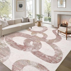 9x12 Area Rug Abstract Snake Print Low Pile Carpet Non-Slip Stain Resistant Large Indoor Floor Rug for Living Room Bedroom Dining Pink
