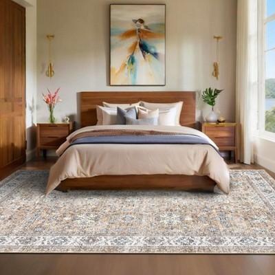 9x12 Area Rug Washable Neutral Floral Living Room Bedroom Rug Vintage Distressed Boho Non Slip Low Pile Carpet Soft Retro Rugs, Beige
