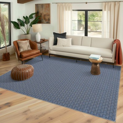 9x12 Area Rug, Washable Rug, Modern Geometric Accent Rug, Soft Rugs for Living Room, Ultra-Thin Low Pile Entryway Rug, Non Slip Carpet, Blue
