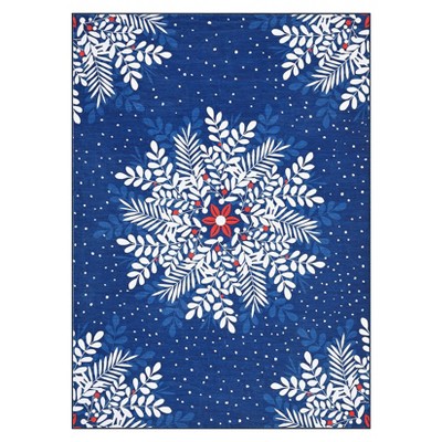 9x12 Christmas Area Rugs, Washable Non-Slip Snowflakes Carpet, Soft Low Pile Foldable Stain Resistant for Bedroom, Home, Blue