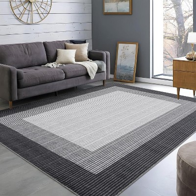 9x12 FT Modern Washable Area Rug for Living Room, Soft Floor Rug with Non Slip Backing, Low Pile Stain Resistant Bedside Carpet for Dorm, Black
