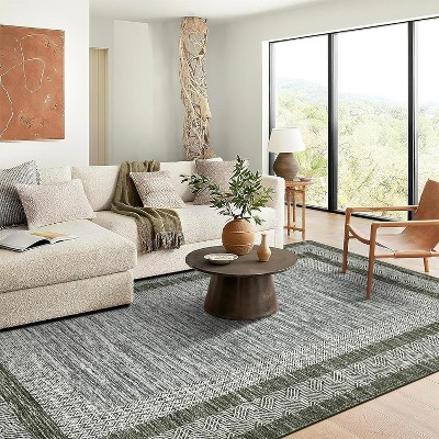 9x12 Green Vintage Floral Washable Rug - Soft, Non-Slip, Classic Retro Farmhouse Carpet for Dining Room or Indoor Spaces
