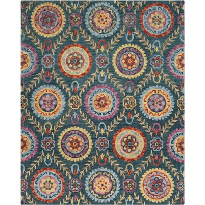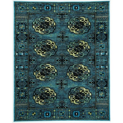 9x12 Large Washable Boho Vintage Area Rug Non-Slip Low Pile Machine Washable Carpet for Living Room, Bedroom, Office, Dining Room Kitchen Cyan-blue