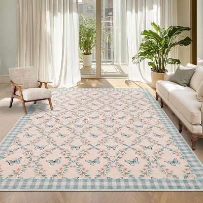 9x12 Modern Tree Print Area Rug - Stain Resistant Bordered Runner for Bathroom, Hallway Home Decor Light Blue