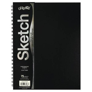 Premium Sketch Book with a durable black poly cover and back. Each book contains 75 sheets of heavyweight, medium tooth, acid-free drawing paper. The spiral binding lies flat for comfortable drawing and sketching. Ideal for sketching and drawing with dry media. Sheets are perforated for illustrations and final art. Acid free.