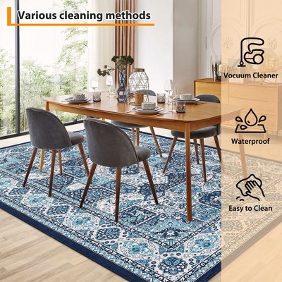 9x12 Vintage Washable Area Rug with Rubber Backing, Soft Throw Carpet for Living Room, Kitchen, Dining Room Office Decor Blue-green
