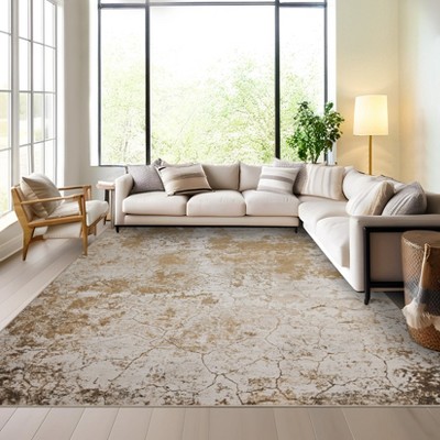 9x12 Washable Area Rugs, Modern Woven Office Floor Carpet Contemporary Rug, Living Room Rug, Soft Surface, Durable Edge, Non-Slip Backing, Beige